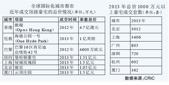根据统计数据,2013年,总价在千万元以上的住宅主要集中在北京、上海、广州、深圳、杭州这五大城市,五大城市千万级豪宅去年总成交8545套,其他城市此类型产品则屈指可数。但有一个城市不能忽略,那就是厦门。