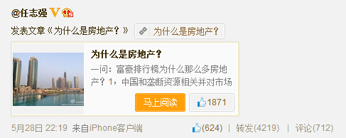 收藏 任志强发长文回答6大问题:为什么是房地产?