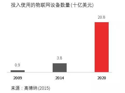 到2020年,全球投入使用的物联网设备数量将达到210亿美元,比2009年的9亿美元增加了20倍。