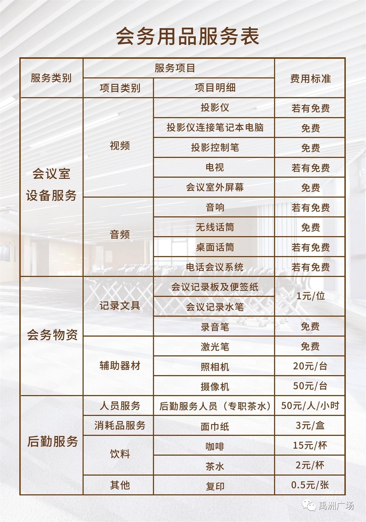1、厦门禹洲广场入驻企业租用会议室均可享有禹洲内部优惠价;