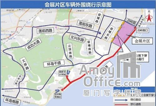 其中,社会车辆如行经会展片区,可选择通过环岛干道、吕岭路、前埔东路、前埔南路、莲前东路等路段绕行。
