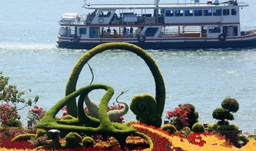 ▲厦门鹭江道轮渡的绿雕“琴音鹭波”,迎着优柔的海风展现曼妙曲线。